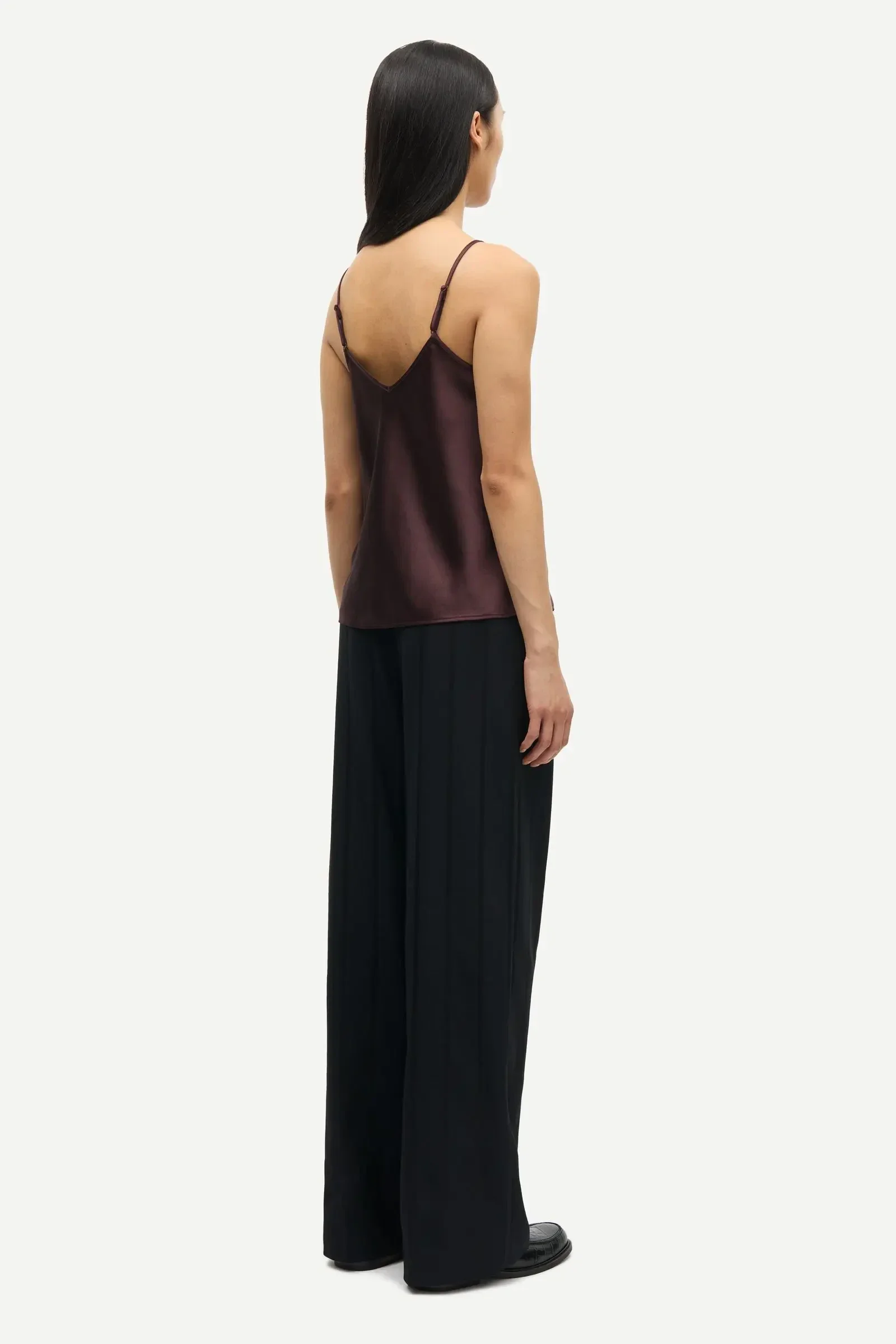 Satijnen top met een normale pasvorm en dunne, verstelbare bandjes. V-hals.